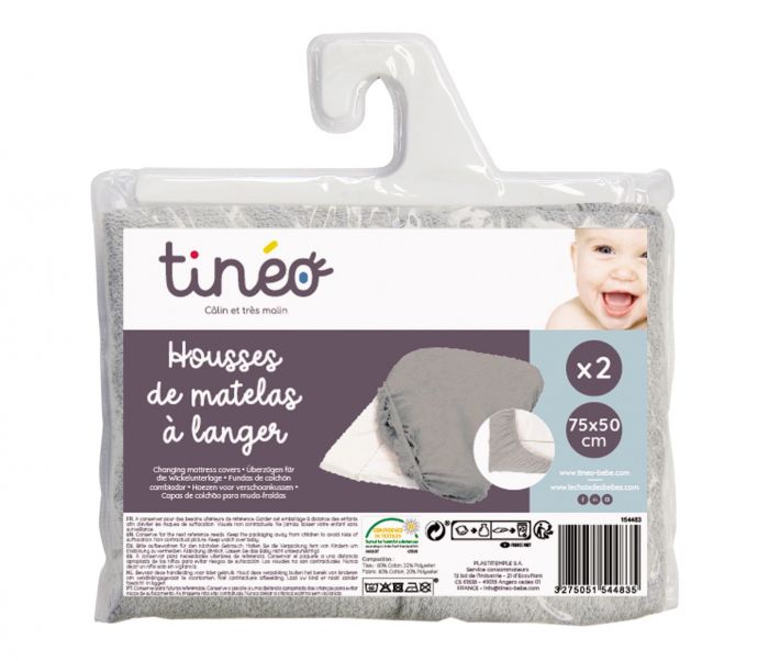 This set of 2 duck blue terry cloth changing mat covers from Tinéo will bring more comfort to baby during the change. Practical, the elasticated corners will allow you to easily install the cover on the changing mat. The sponge cover is very comfortable for baby, it offers him a better reception on his changing mat. The use of a cover is more hygienic because it can be washed, more the sponge material is pleasant and less cold than PVC. The cover can be washed at 60 degrees for ideal hygiene. This set of 2 terry cloth changing mat covers is also available in dark gray and light gray.